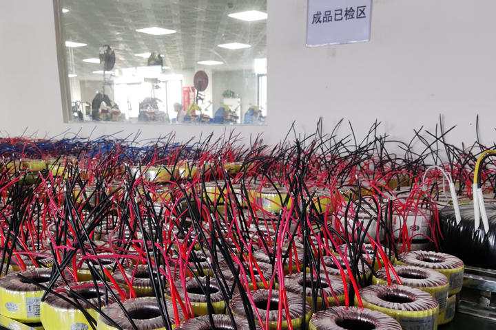 圣元倉(cāng)庫的一角存放著已經(jīng)檢測(cè)好的成品環(huán)形變壓器,準(zhǔn)備發(fā)出。