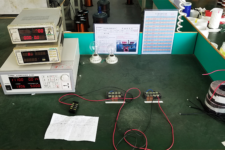 圣元電器生產車間每一條產線都配有一個產品質量檢測臺,確保生產出來的每一臺變壓器產品都是百分百合格