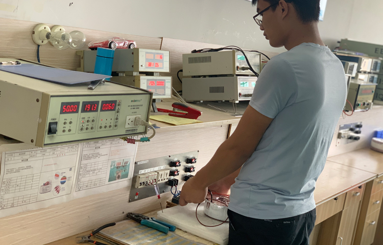 圣元電器工作人員正在給環(huán)形變壓器測試輸出輸入電壓。
